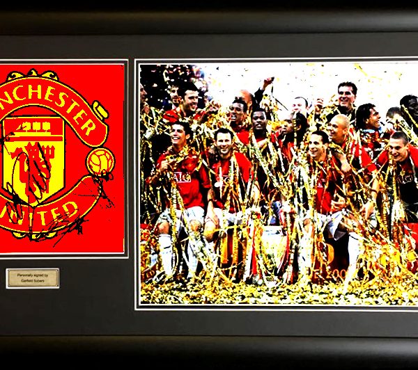 This large Manchester United signed presentation has been signed by manager Sir Alex Ferguson, the worlds best player Cristiano Ronaldo and the Manchester United well-known players Ryan Giggs, Patrice Evra and Anderson.