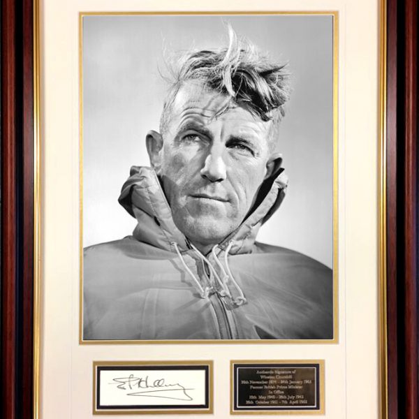 This presentation has been signed by New Zealand mountaineer, explorer, and philanthropist, Sir Edmund Hillary.